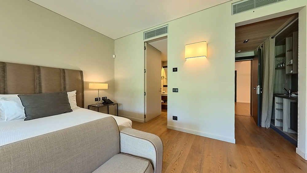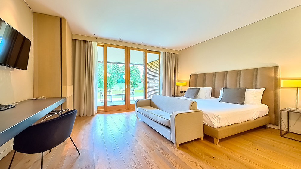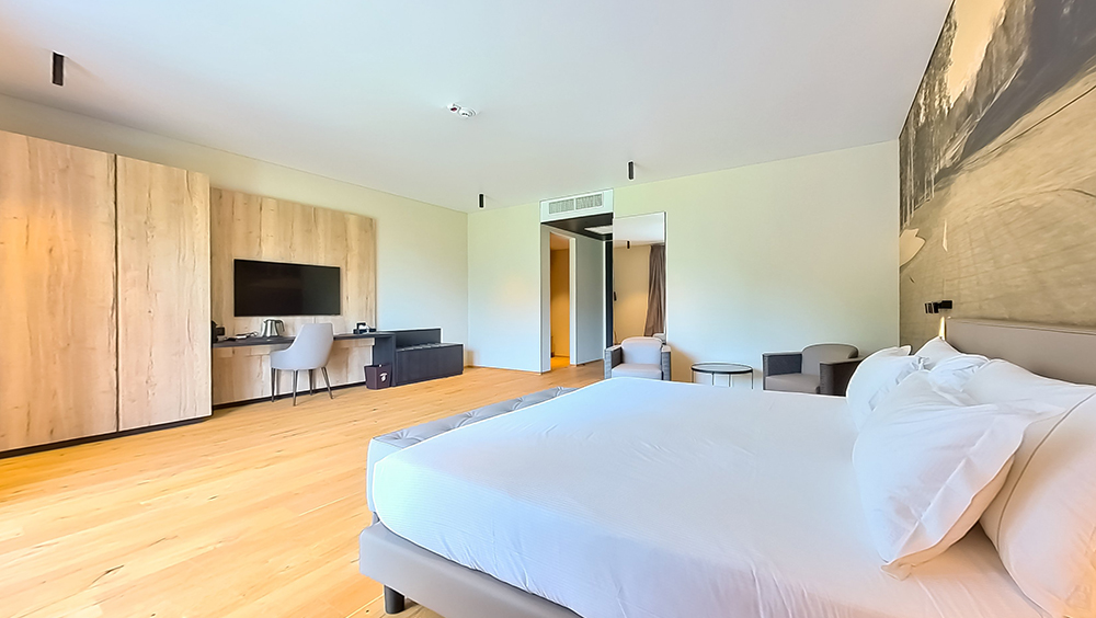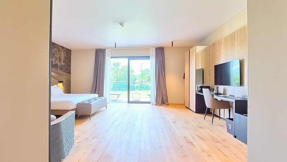 Hotellet öppnade 2014 och har byggts med återvinningsbara naturmaterial och med en låg miljöpåverkan genom avancerad byggteknik. Här finns loungebar, en panoramaterrass, fitnesscenter, spa, utomhuspool, parkering med elbilsladdning. I anslutning till hotellet finns även tennis- och padelbanor.